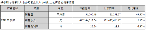 据了解,报告期内,联建光电实现营业收入5.02亿元,其中LED显示业务实现营业收入4.17亿元,较去年同期LED显示业务收入增长12.17%,LED显示业务收入占比超过80%。