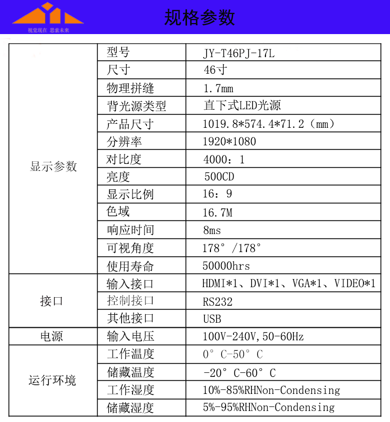 46寸液晶拼接显示单元 JY-T46PJ-17L